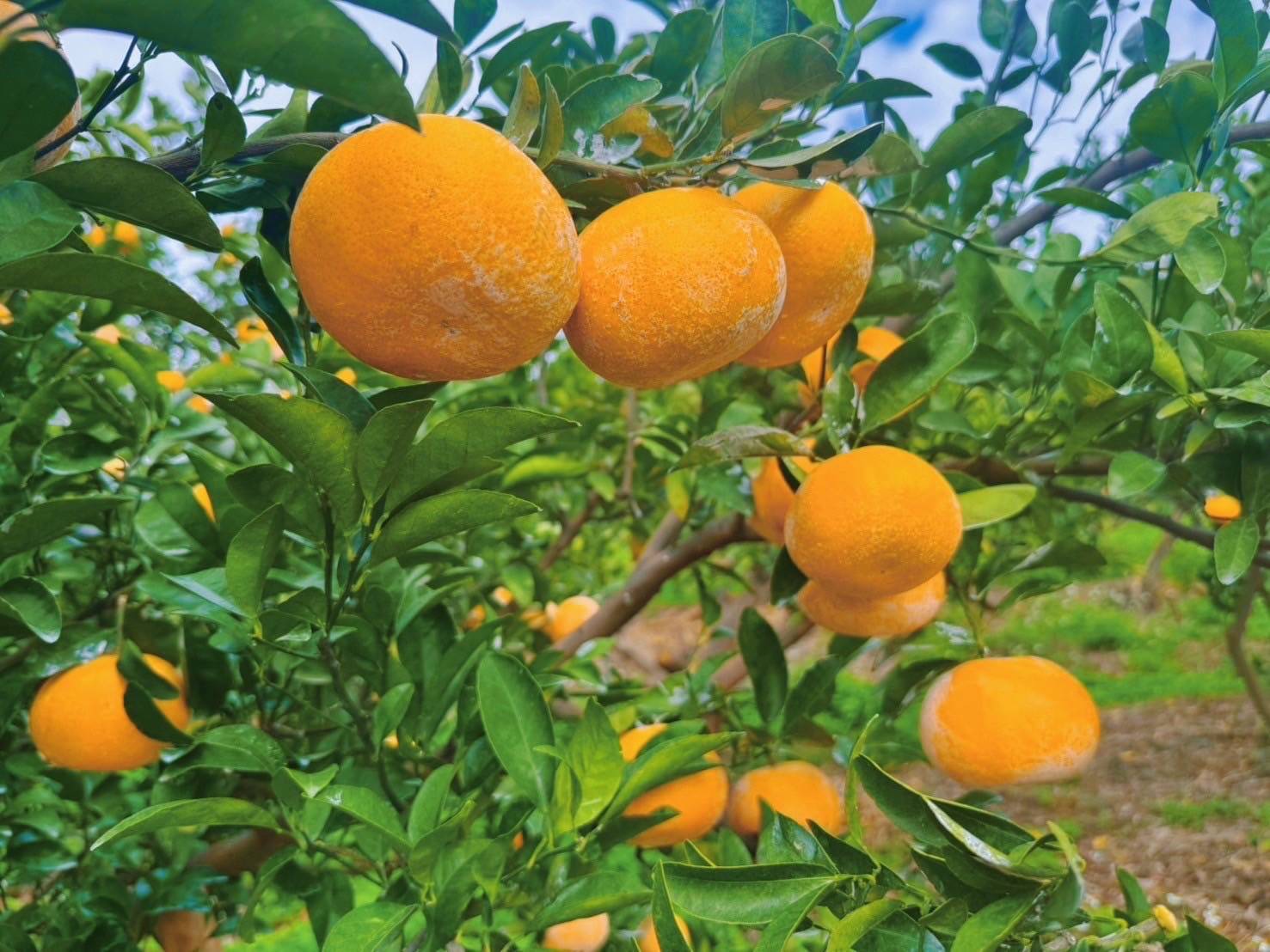 果園內採用草生栽培技術,讓青草覆蓋土壤,有效避免除草劑的過度使用,同時保持土壤肥沃與生態平衡。這樣自然的種植方式,不僅讓茂谷柑更香甜,也為環境保護盡一份心力。