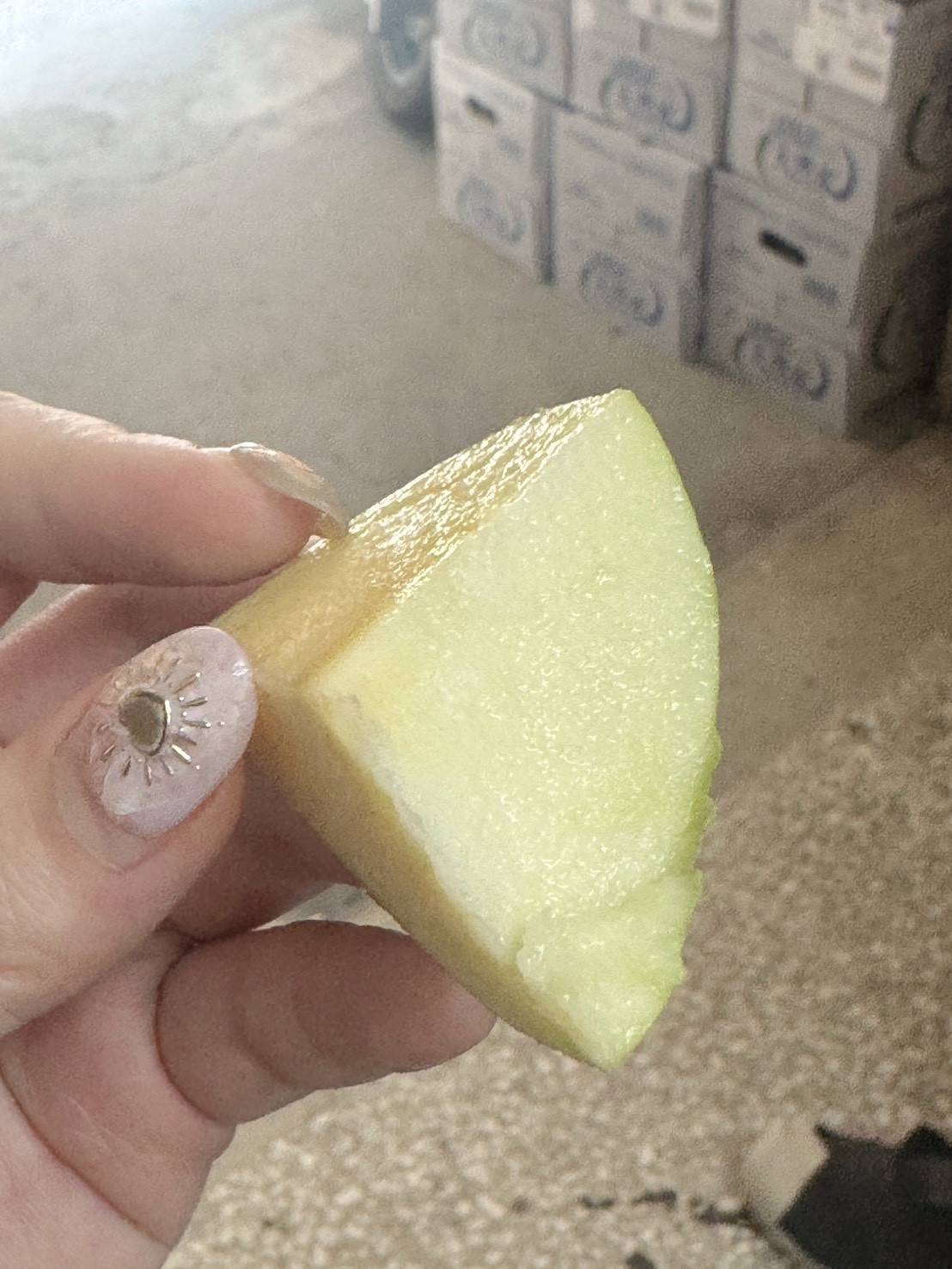 尾韻還帶有一絲水蜜桃的柔和香氣,是甜度與香氣兼具的夢幻蘋果。